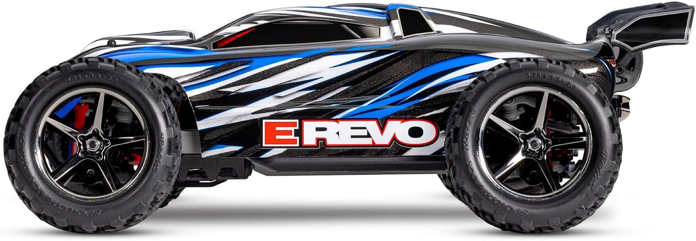 • Includes: (1) Traxxas E-Revo 1/16 RTR 4WD Monster Truck (1) 2-Amp USB-C Fast Charger (1) NiMH Battery with Traxxas ID (1) User Manual