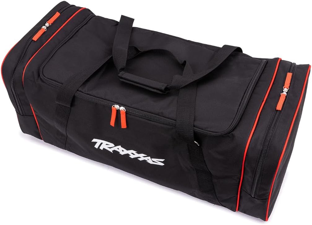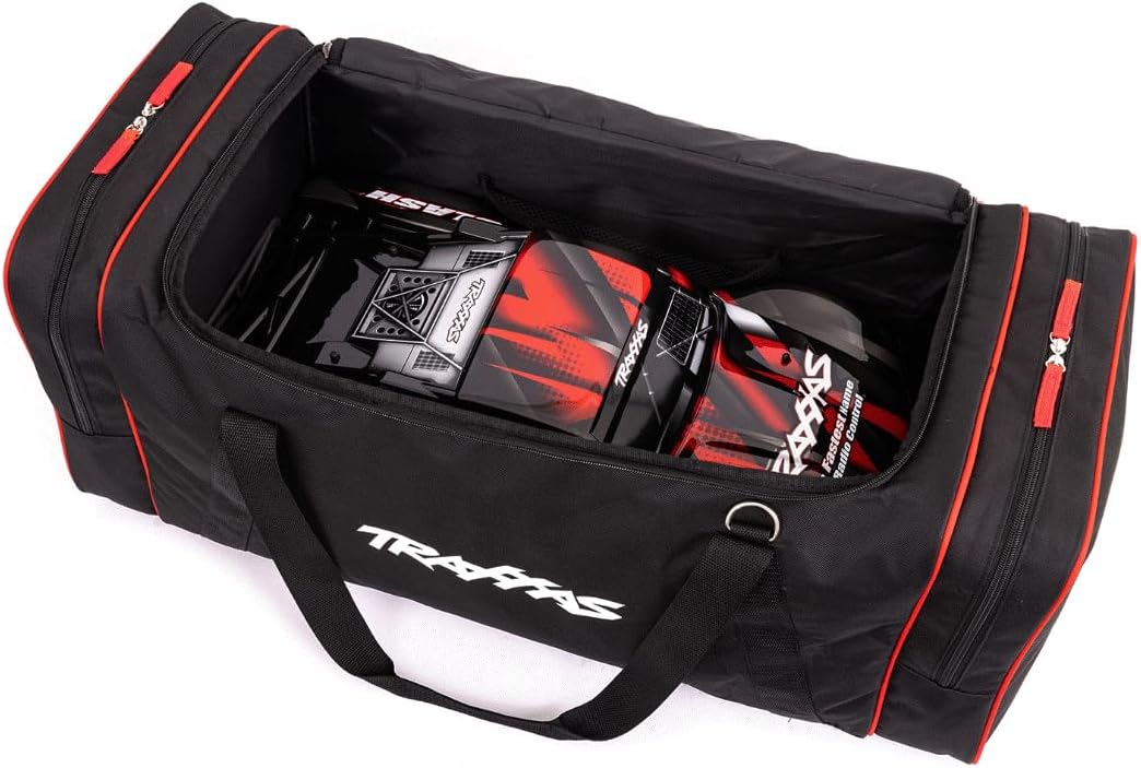 Based on the pro-quality bags our team uses in the field. the Traxxas duffel bag protects your gear and gets you to your destination in style. The main padded compartment accommodates standard 1/8 and 1/10 scale vehicles and features dual ventilated mesh side pockets. Large zippered compartments on each end are subdivided with ample room for a transmitter. tools. batteries. and other gear. Protect your valuable investment and travel like a pro with the Traxxas RC duffel bag.