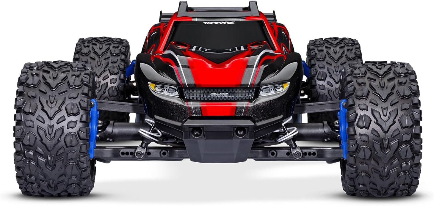 Rustler 4X4 is the definitive go-to machine for speed. agility. and unstoppable 4WD traction. Beneath the reinforced clipless body. Rustler’s chassis sits low and wide for increased stability and sharp handling. Rustler’s all-new BL-2s brushless power system delivers effortless power for all-day fun with an added boost of torque for 4-wheel burnouts and lightning-fast acceleration. Additionally. Rustler 4X4 now comes standard with Traxxas’ Extreme Heavy Duty Upgrade Kit to become the new standard for strength and durability.