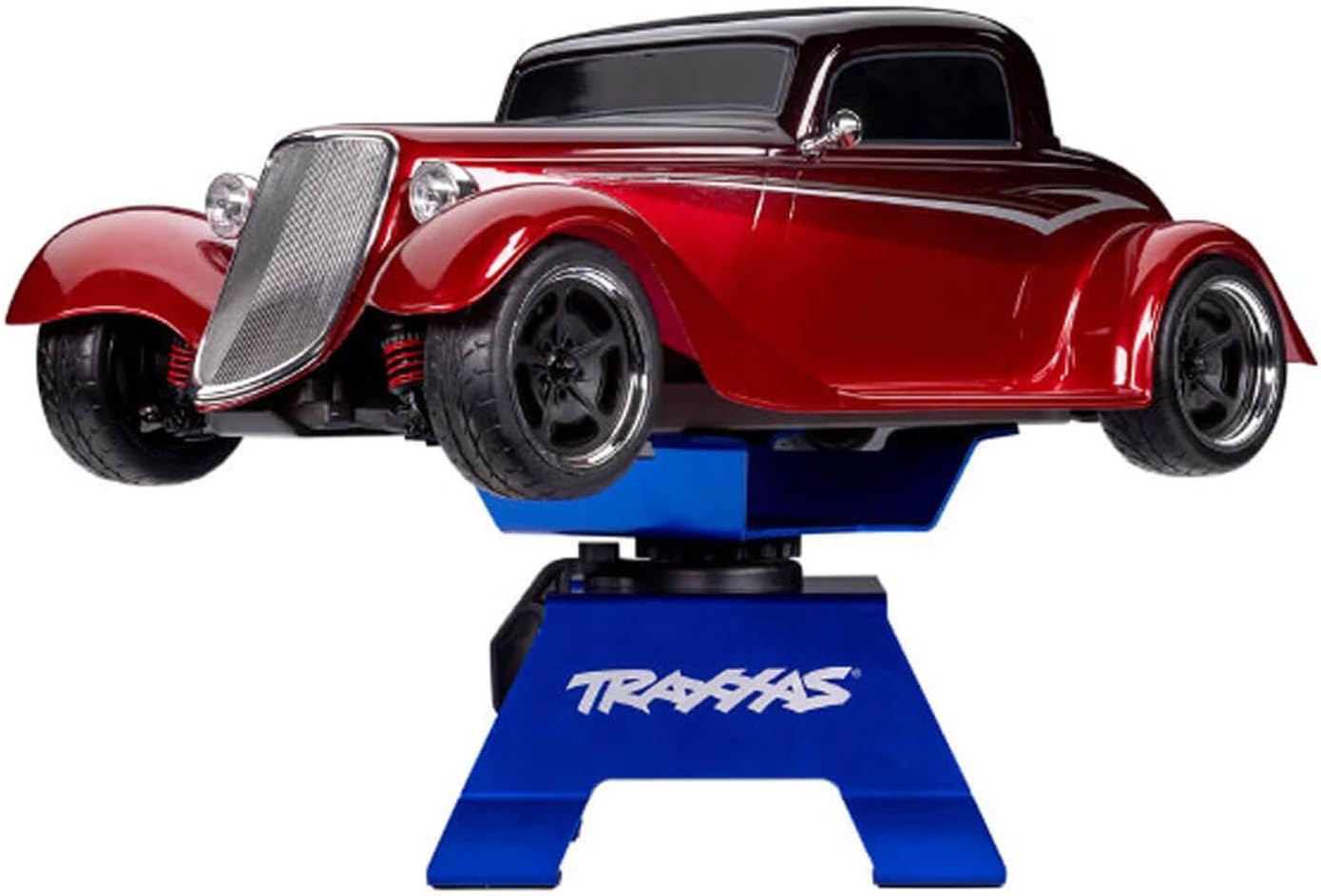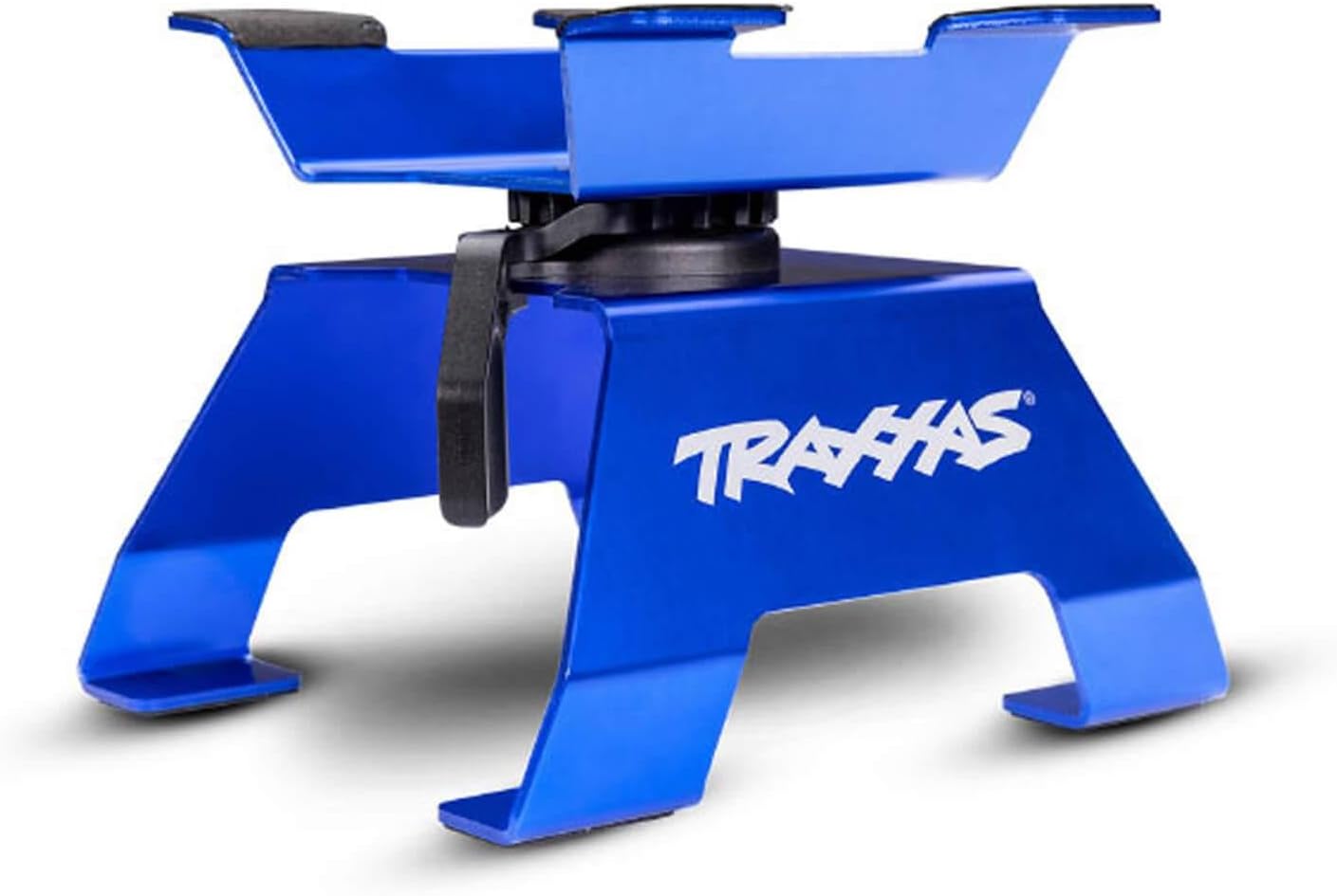 Designed to fit almost any 1/8 and 1/10 scale vehicle. the aluminum Traxxas RC stand is the perfect addition to your workbench. Made from high-quality aluminum and anodized with a brilliant blue finish. the RC stand is built for years of dependable service. The stand swivels a full 360° on dual ball bearings for smooth. precise action. A handy locking lever secures the stand in one of 16 different positions for maximum stability. Pick up your Traxxas RC stand today and start working like a pro!
