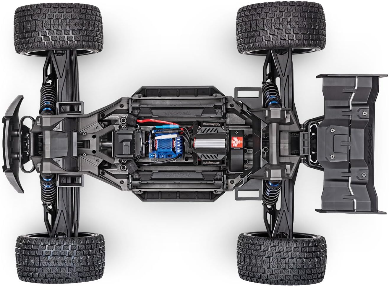 - XRT’s performance-focused chassis design is configured to lower the center of gravity for superior handling and stability. The dual 6700 4s batteries and the steering servo are positioned to place the weight as low as possible in the chassis and provide protection for these critical components.